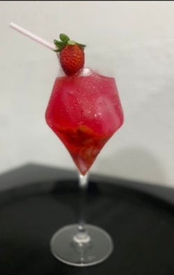 VINHO,LEITE CONDENSADO,SUCO DE MORANGO EM PÓ,GELO.